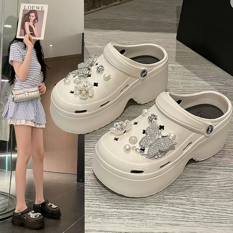 Butterfly Charm Platform Clogs – Pearl & Rhinestone Decorative Clogs